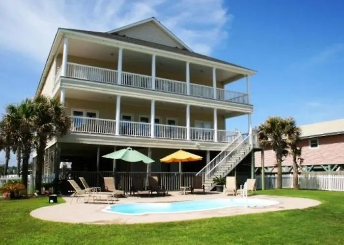 Situated 5 minutes' stroll from Cherry Grove Oceanfront Park, the beachfront Anderson Cottage Oceanfront Beach House With Pool In Cherry Grove offers easy access to numerous tourist spots in the area. Located 4.4 km from Cricket Cove Marina, this 7-bedroom villa provides Wi-Fi and parking.